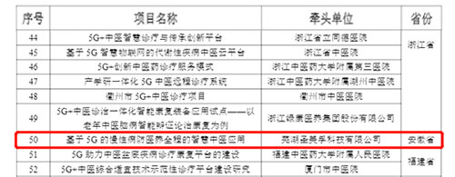 8月17日,中華人民共和國工業和信息化部官方網站發布了“5G+醫療健康應用試點項目名單”,由蕪湖圣美孚科技有限公司牽頭,聯合蕪湖市中醫醫院、蕪湖市高科電子有限公司、安徽中醫藥高等專科學校、中國電信股份有限公司蕪湖分公司、天津理工大學五家單位共同申報的《基于5G的慢性病防醫養全程的智慧中醫應用》項目成功入選此次應用試點項目名單,也是安徽省入選“5G+中醫診療”方向名單的項目。